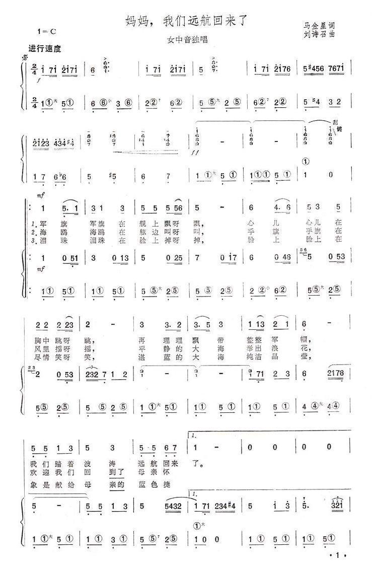 《妈妈,我们远航回来了(手风琴简谱系列98)》手风琴谱 苏小明