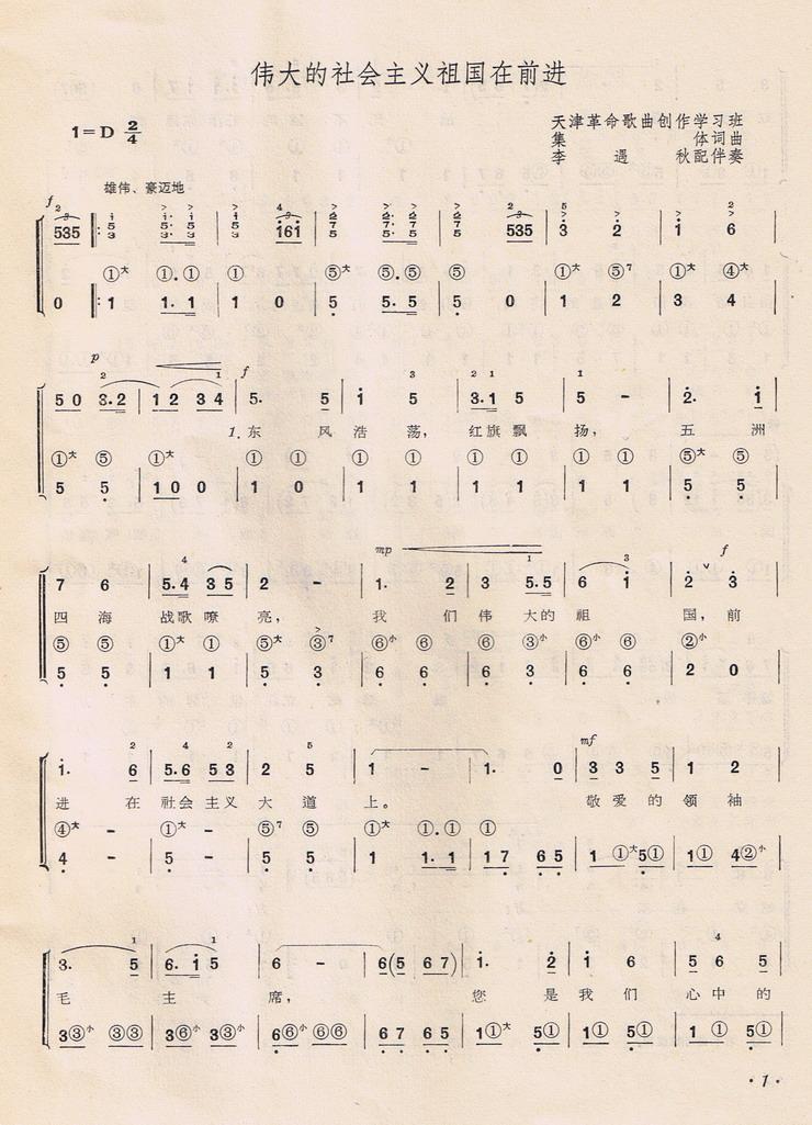 《伟大的社会主义祖国在前进(手风琴简谱系列34)》手风琴谱