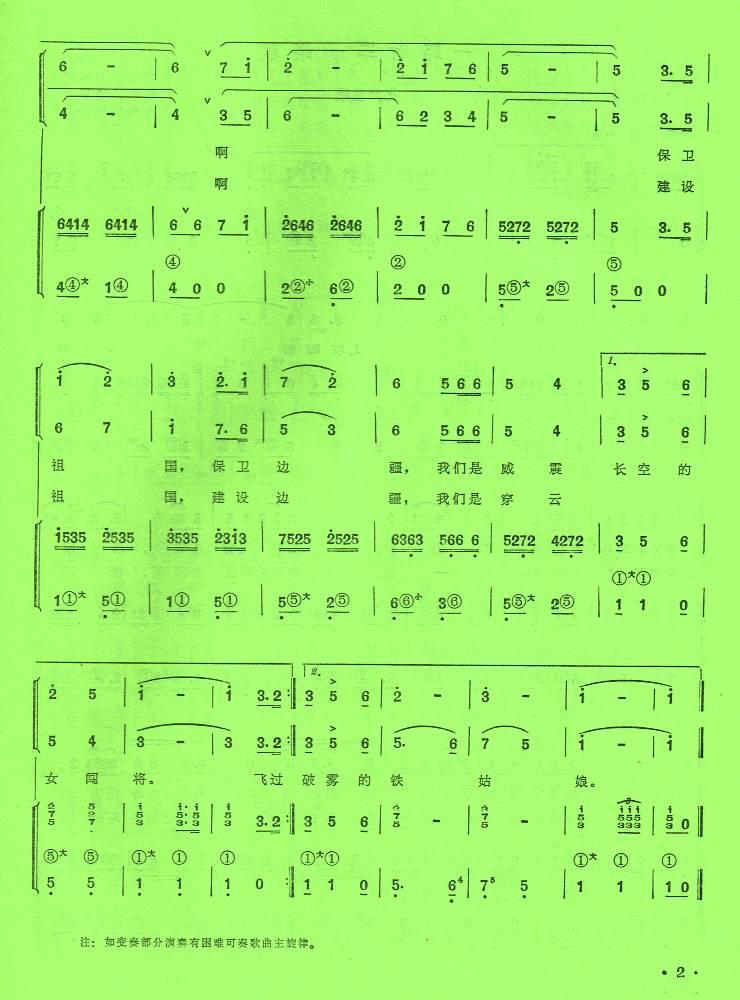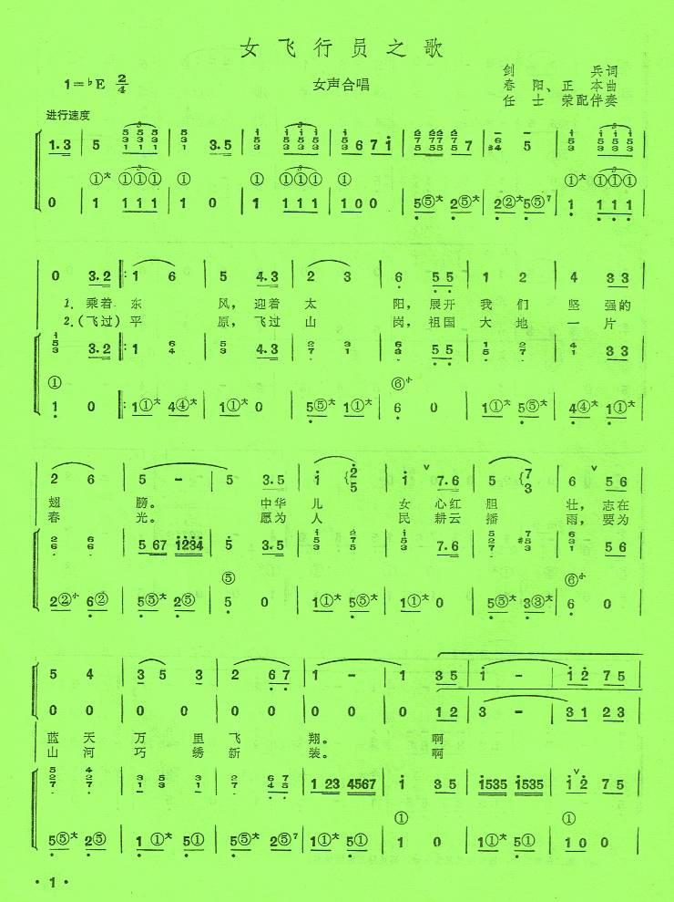 《女飞行员之歌(手风琴简谱系列50)》手风琴谱