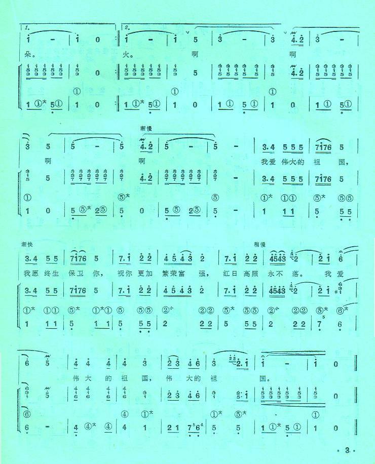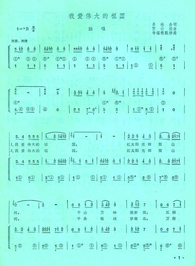 《我爱伟大的祖国(手风琴简谱系列48)》手风琴谱