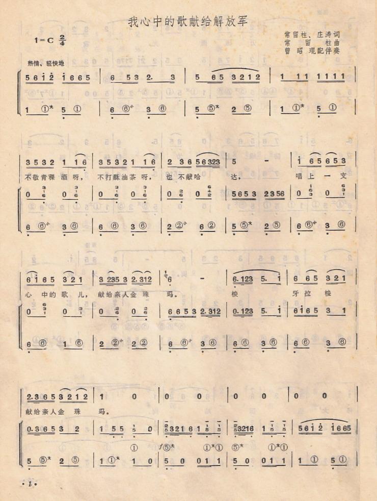 《我心中的歌献给解放军(手风琴简谱系列45)》手风琴谱
