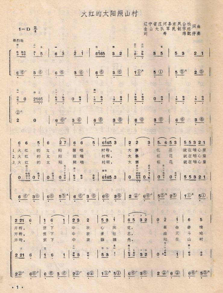《火红的太阳照山村(手风琴简谱系列43)》手风琴谱