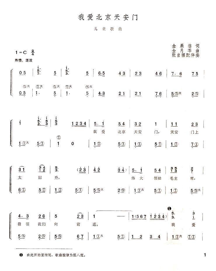 《我爱北京天安门(手风琴伴奏简谱)》手风琴谱