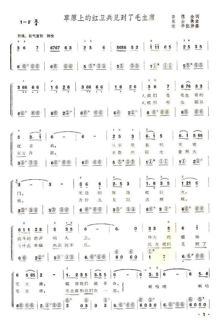 《草原上的红卫兵见到了毛主席(手风琴伴奏简谱)》手风琴谱
