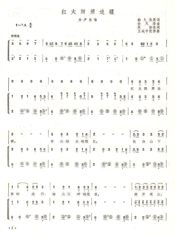 《红太阳照边疆(又一伴奏简谱)》手风琴谱