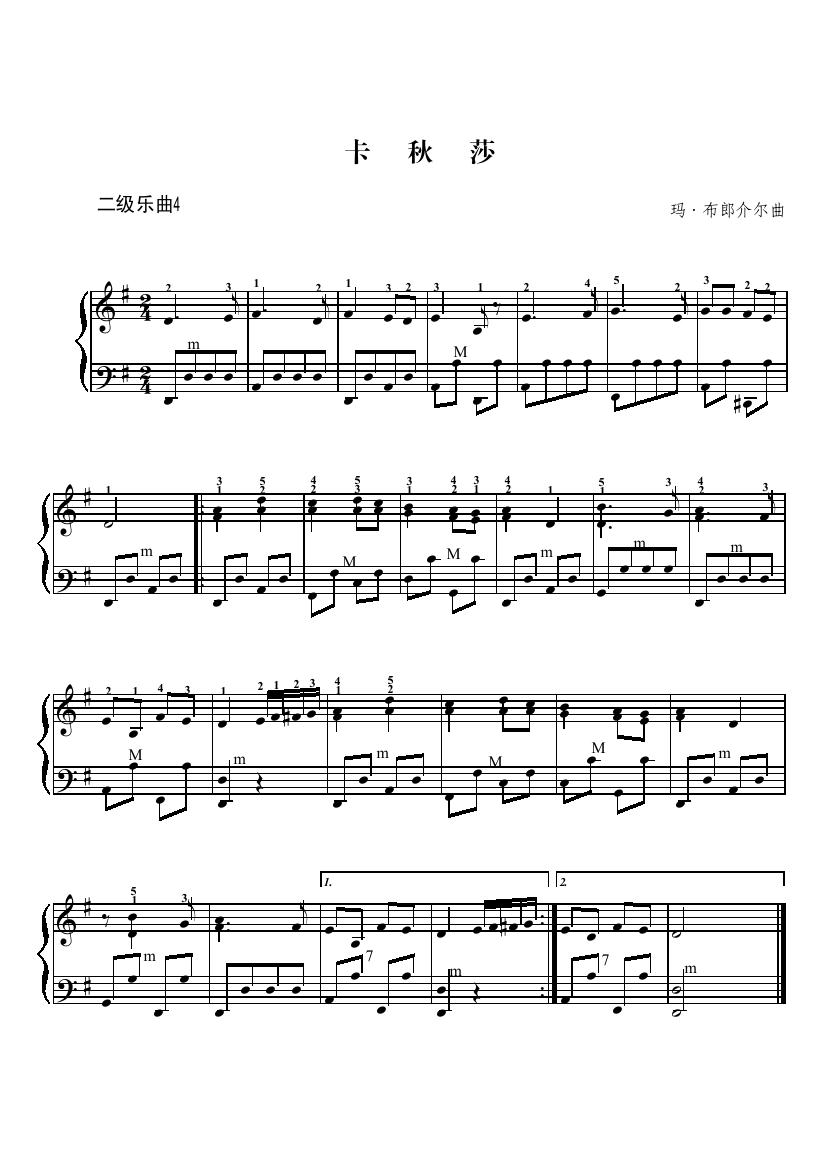 《卡秋莎(二级练习曲)》手风琴谱 考级乐曲
