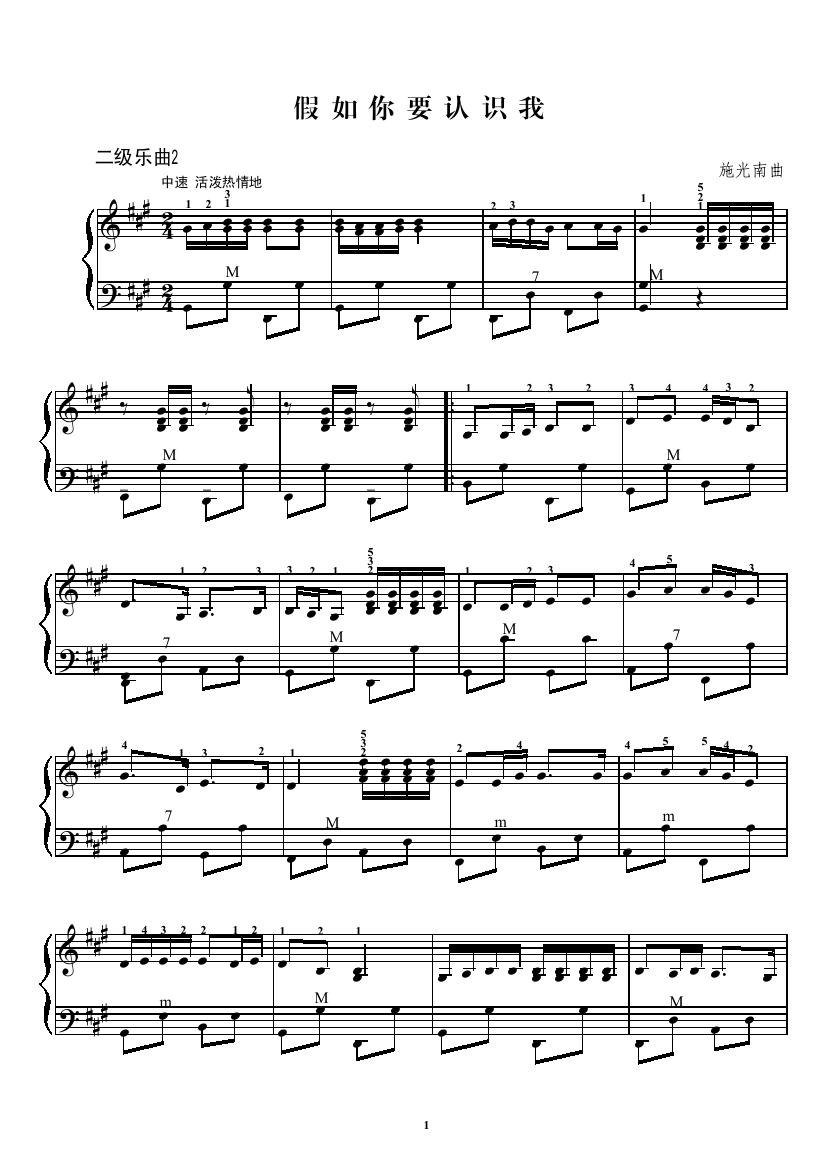 《假如你要认识我(二级练习曲)》手风琴谱 考级乐曲