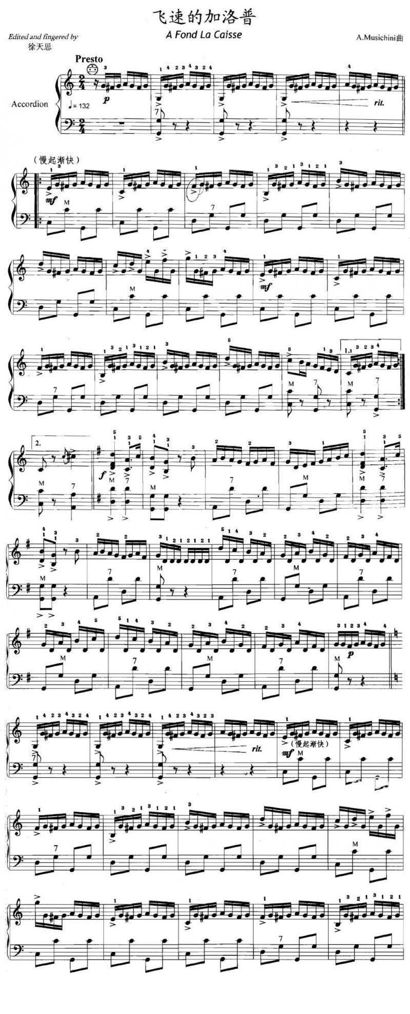 《飞速的加洛普》手风琴谱
