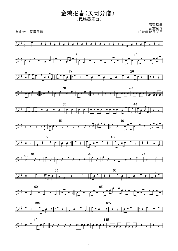 《金鸡报春(贝司分谱)》总谱