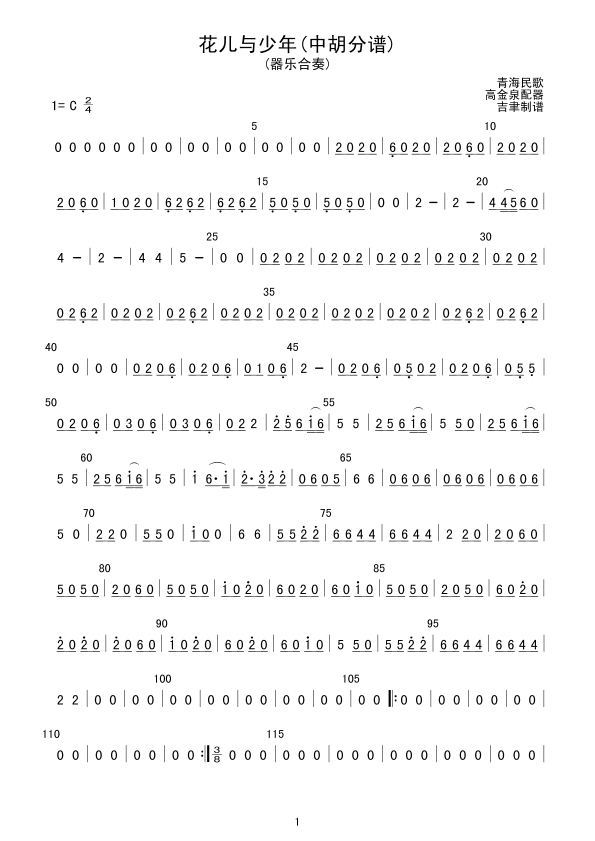 《花儿与少年(中胡分谱)》总谱