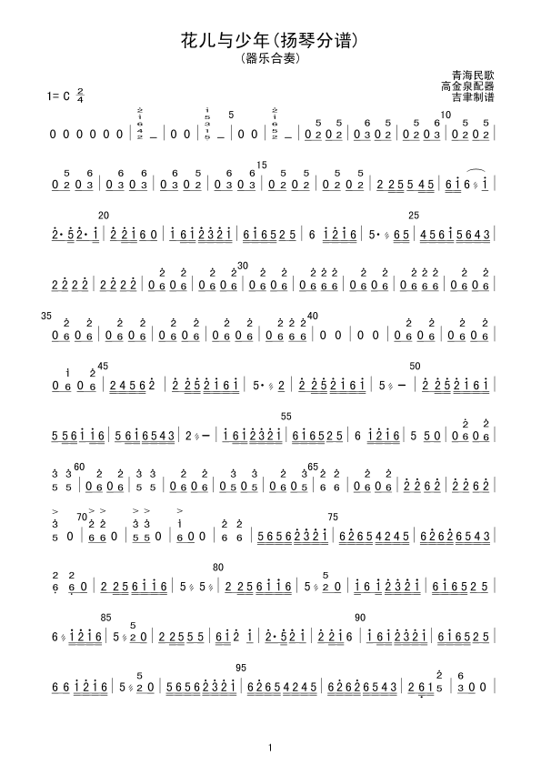 《花儿与少年(扬琴分谱)》总谱