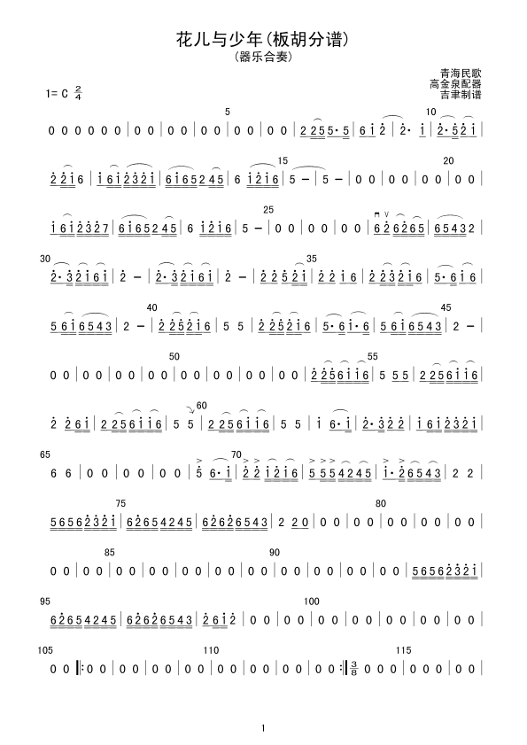《花儿与少年(板胡分谱)》总谱