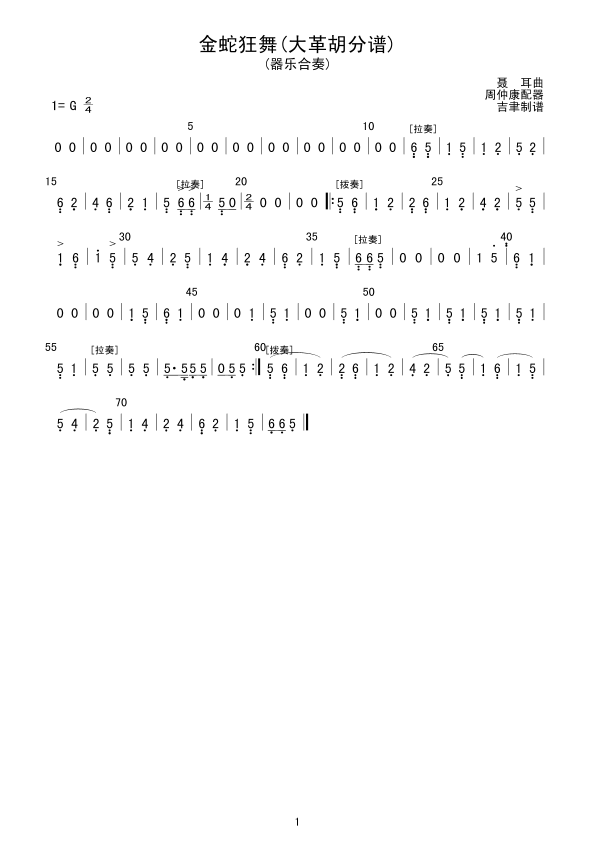 《金蛇狂舞(大革胡分谱)》总谱
