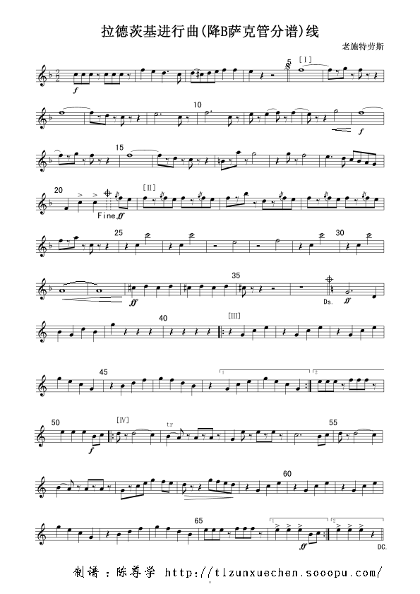 《拉德茨基进行曲(降B萨克管分谱)线》总谱