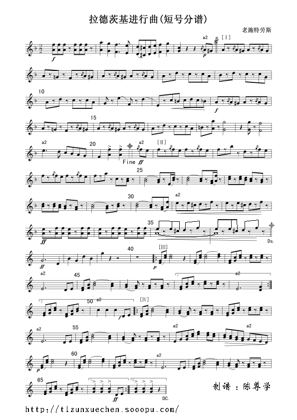 《拉德茨基进行曲(降B短号分谱)线》总谱