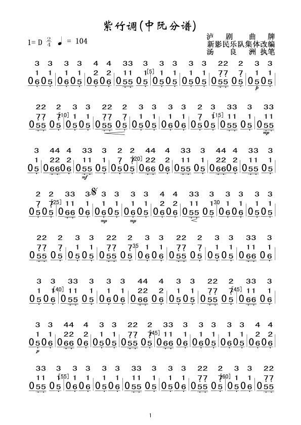 《紫竹调(中阮分谱)》总谱