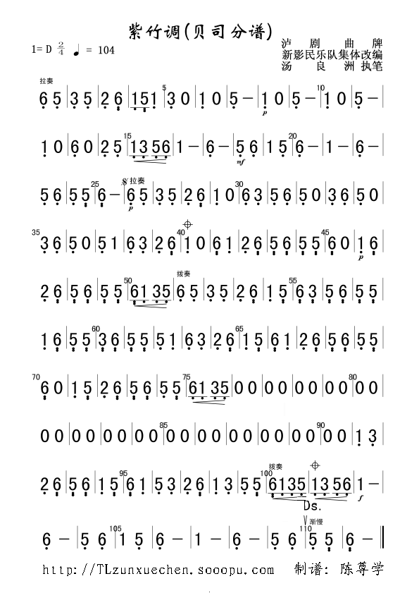 《紫竹调(贝司分谱)》总谱